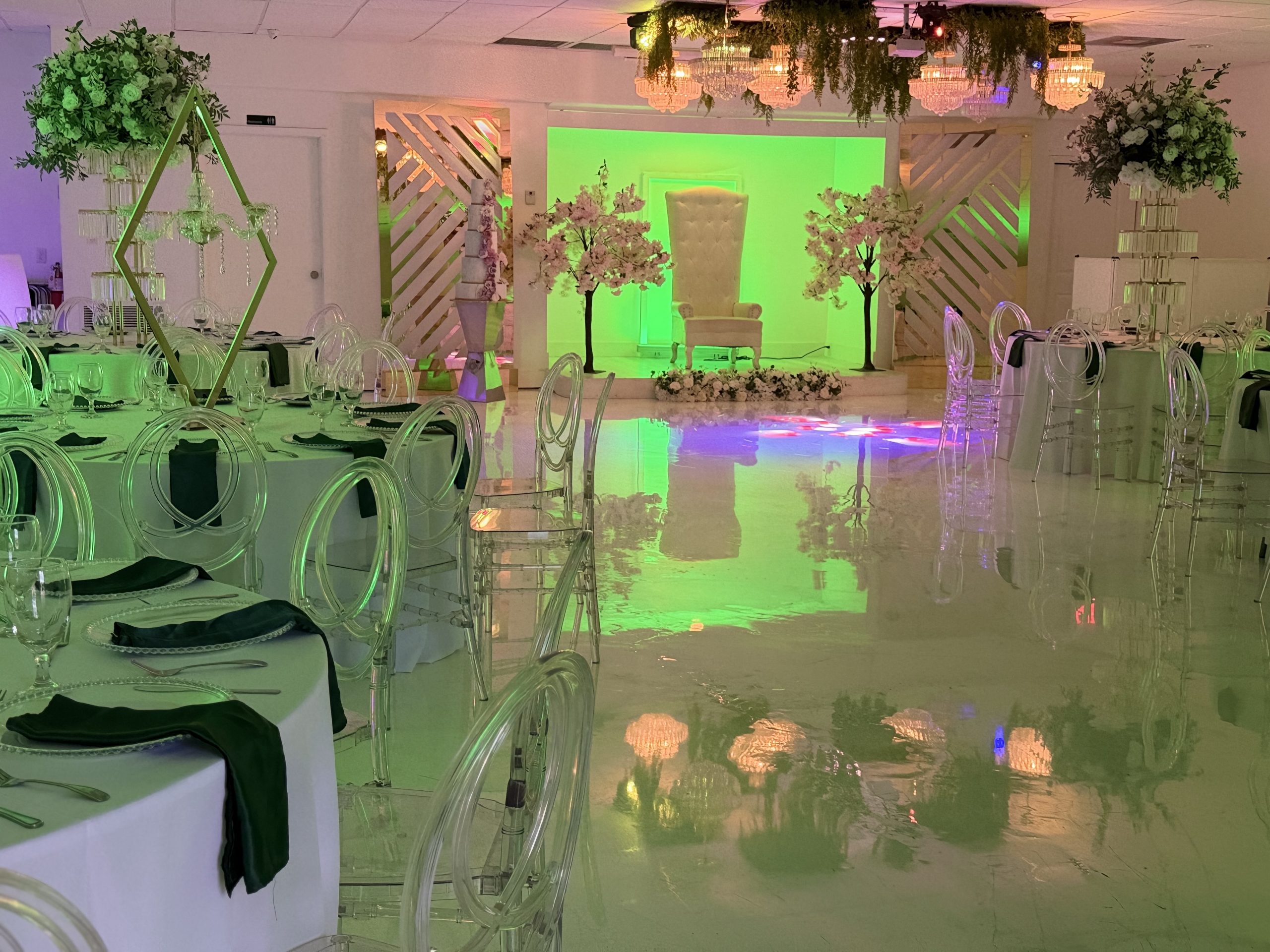 Experience the perfect blend of elegance and versatility at Salon B in Hialeah. Whether you are planning the wedding of your dreams, a magical Quinceañera or Sweet Sixteen, a joyful baby shower, or a distinguished social event, our venue provides a sophisticated backdrop tailored to your vision.